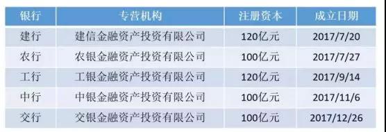 此前銀保監(jiān)會已經(jīng)批準了5家國有銀行設(shè)立債轉(zhuǎn)股實施機構(gòu)如下: