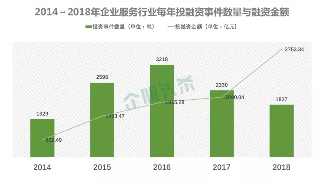 根據(jù)IT桔子收錄的投資信息顯示,今年企服領(lǐng)域的投資事件數(shù)量是所有行業(yè)中最多的,新增投資事件共1827件,新增投資金額高達(dá)3753.34億元。