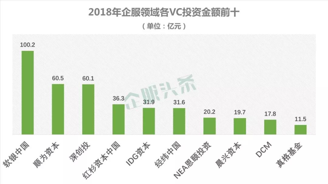 今年軟銀中國(guó)大半的資金涌入了汽車交通、文化娛樂(lè)等方面,再加上在企服領(lǐng)域投資了商湯、WeWork等獨(dú)角獸企業(yè),都比較燒錢,所以雖然軟銀中國(guó)在企服領(lǐng)域投資數(shù)量不多,但投資金額排名會(huì)比較靠前。