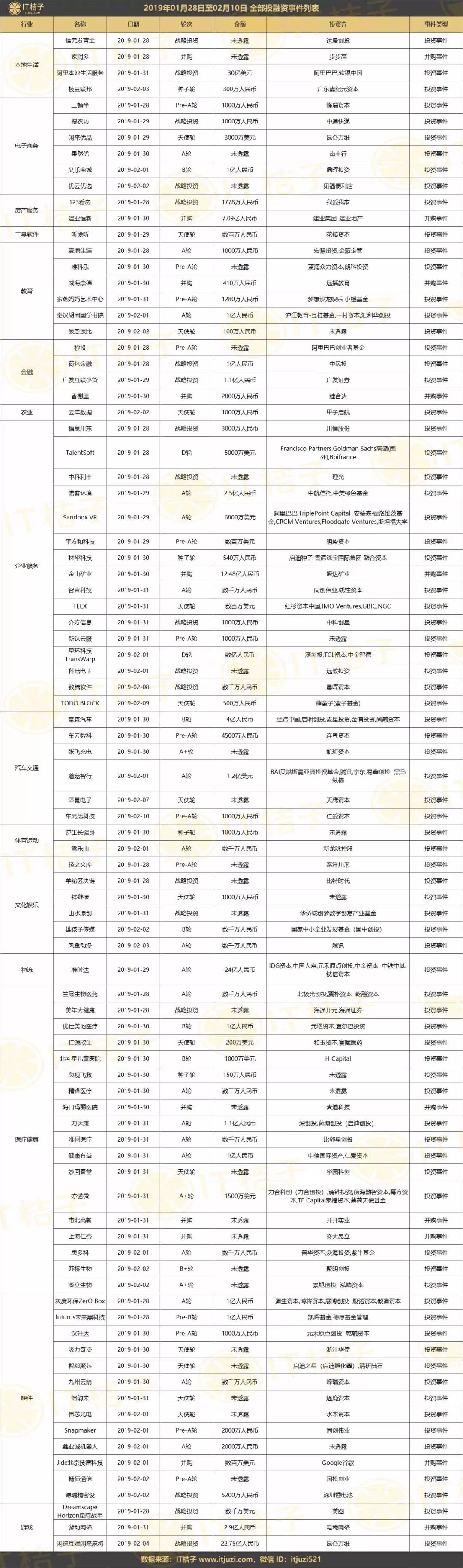在「有錢沒錢回家過年」的春節(jié)返鄉(xiāng)氛圍中,創(chuàng)投圈依然投入于融資收購。在豬年到來之際,也就是2019.01.28至2019.02.10期間,創(chuàng)投圈共計(jì)發(fā)生89起投融資并購事件。